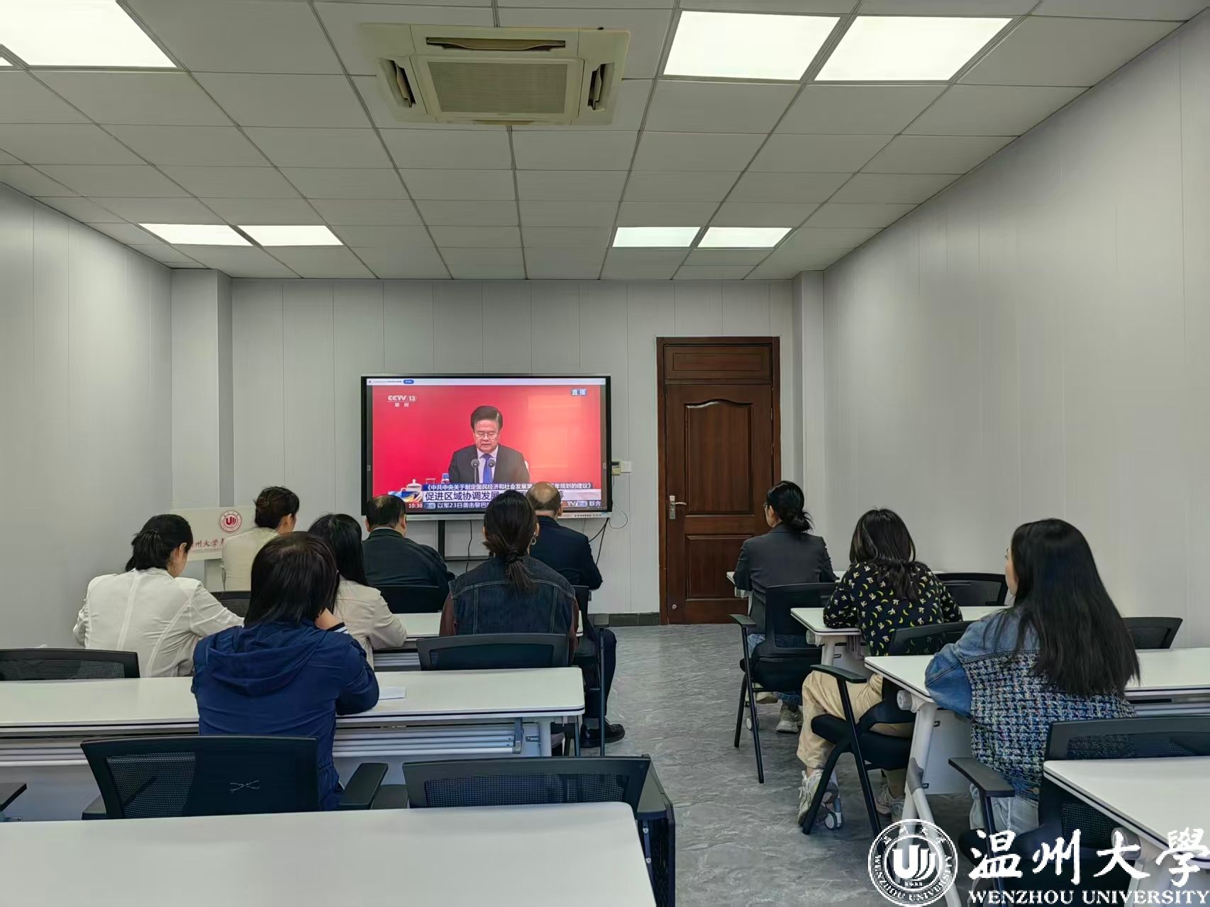 10月24日上午10时,中共中央介绍和解读党的二十届四中全会精神新闻发布会在北京隆重召开。为及时学习领会全会精神,马克思主义学院第一时间组织党政班子成员、支部书记、全体行政人员集中收看直播。