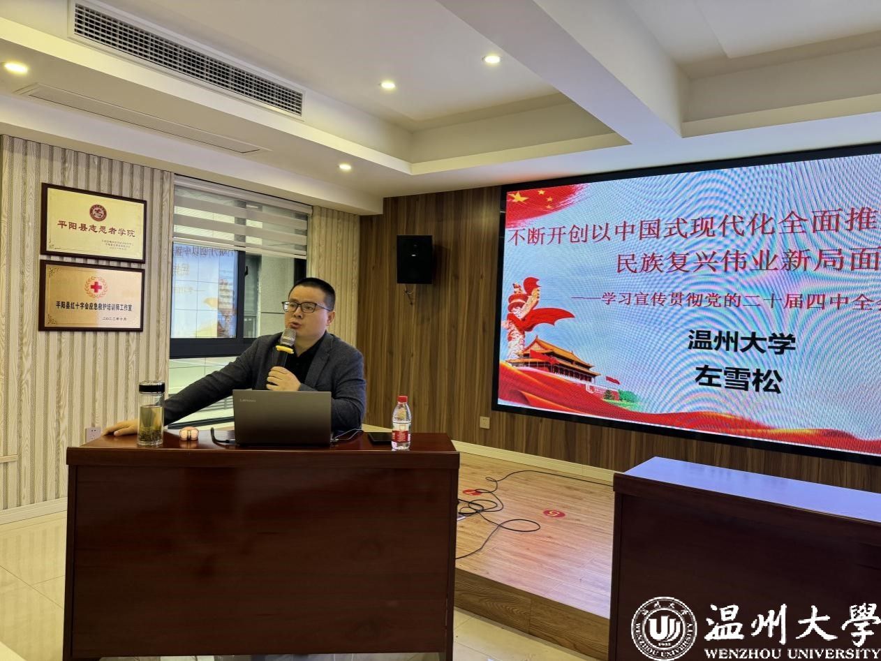共建后的首场理论宣讲由温州大学马克思主义学院副教授左雪松开讲,他以“不断开创以中国式现代化全面推进强国建设 民族复兴伟业新局面——学习宣传党的二十届四中全会精神”为题,进行了示范宣讲与交流。
