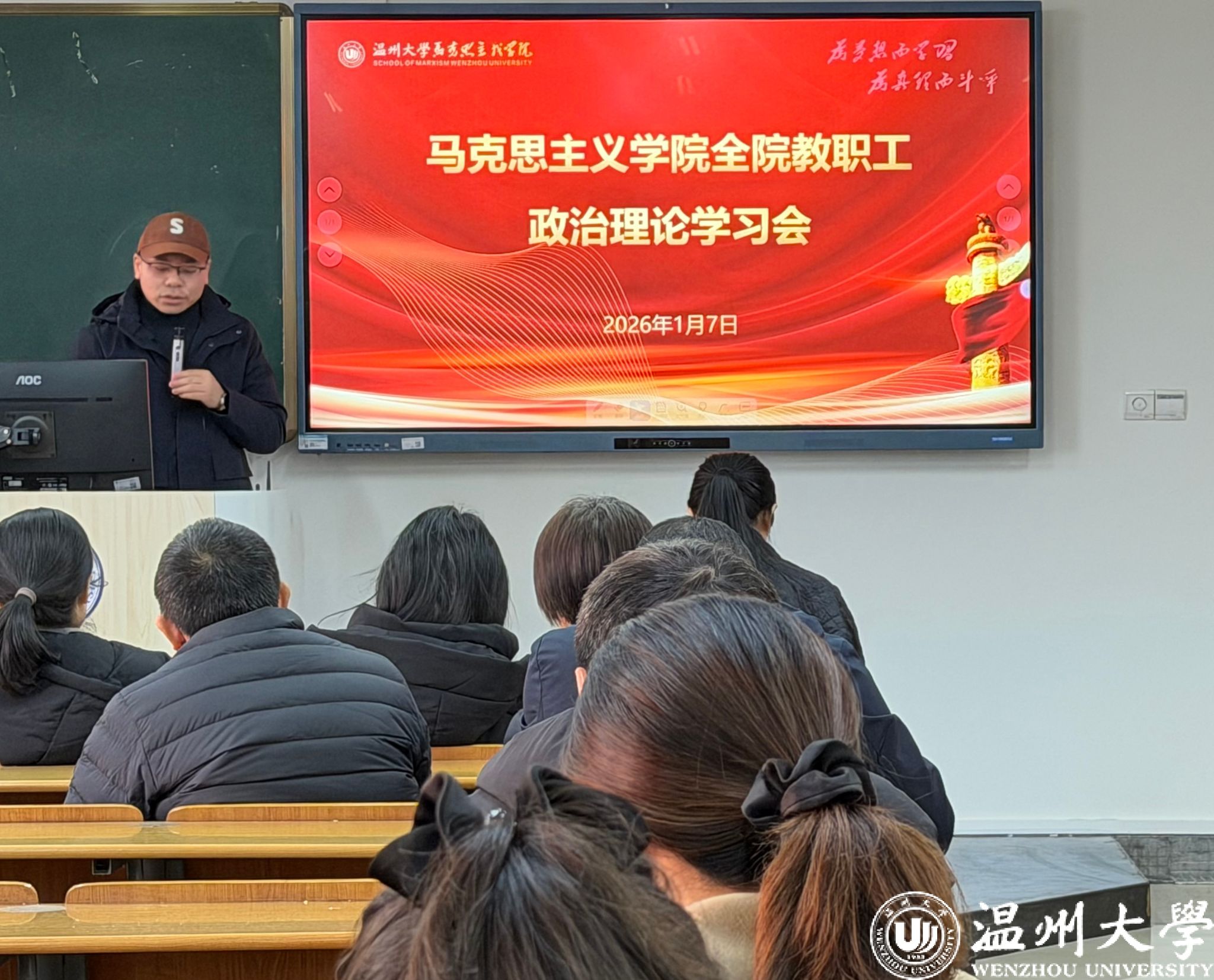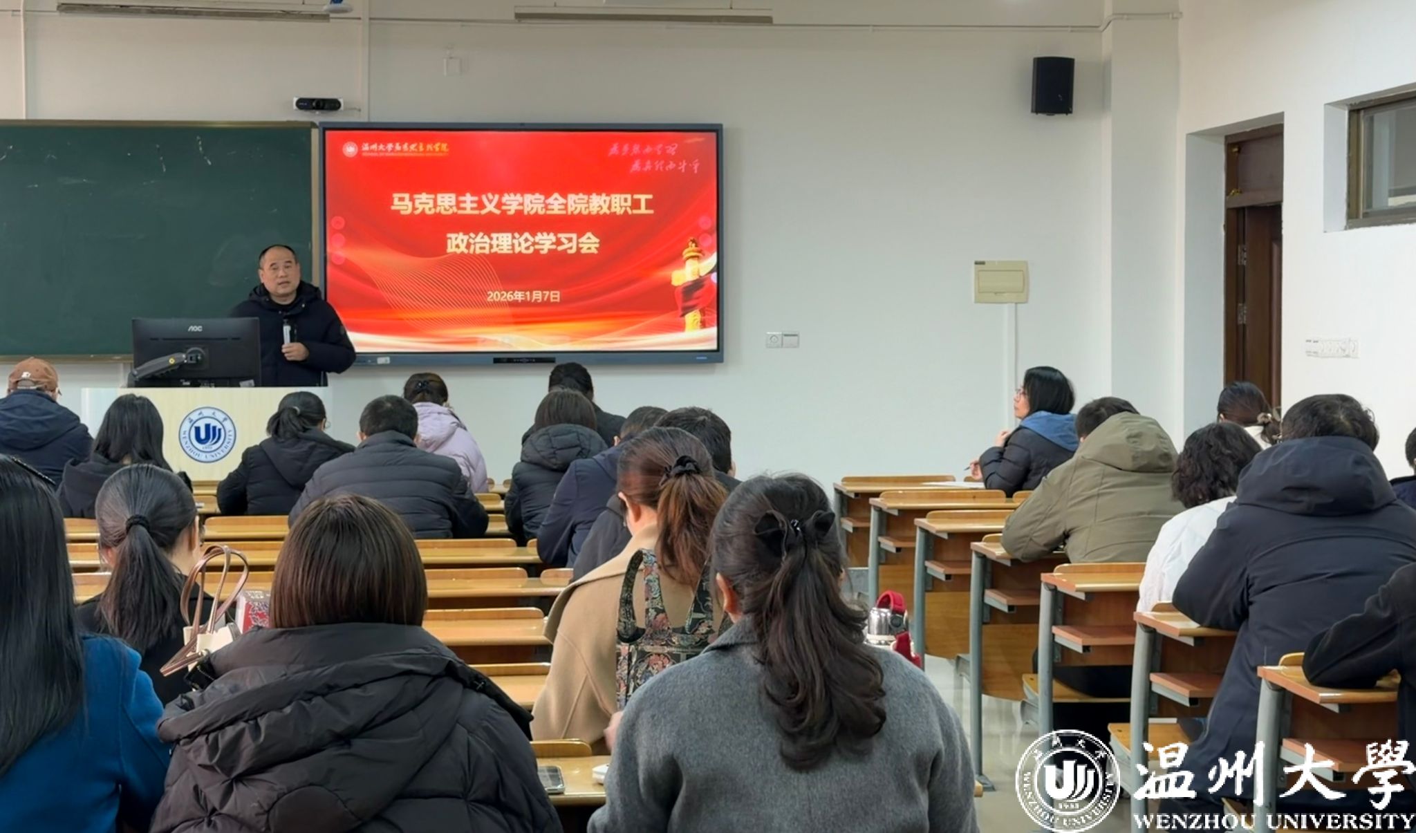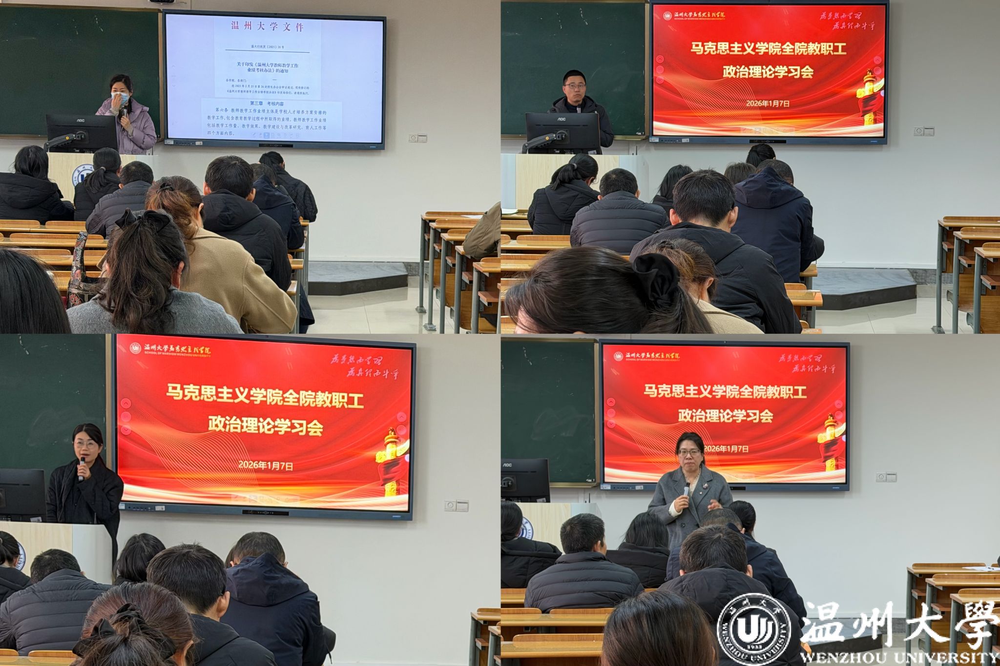 2026年1月7日下午,马克思主义学院在北校区4号楼306教室召开全体教职工政治理论学习会。学院领导班子成员、全体教职工参加会议,学院党委书记杨立淮主持会议。