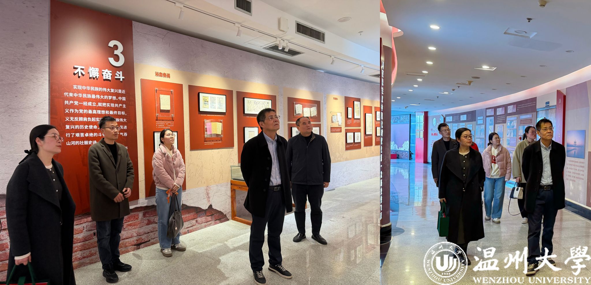 首先,温州科技职业学院马克思主义学院一行实地参观了温州大学马克思主义理论教育基地和“档案里的初心故事——珍贵红色档案文献展”展馆,详细了解基地建设、育人实践与特色成果,沉浸式感受学院思政教育阵地建设成效。