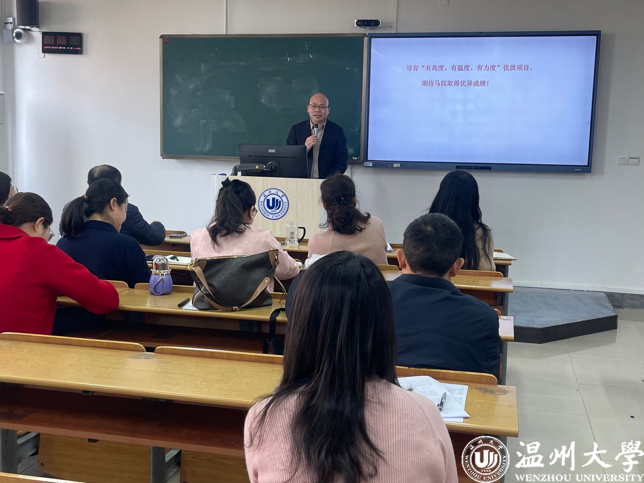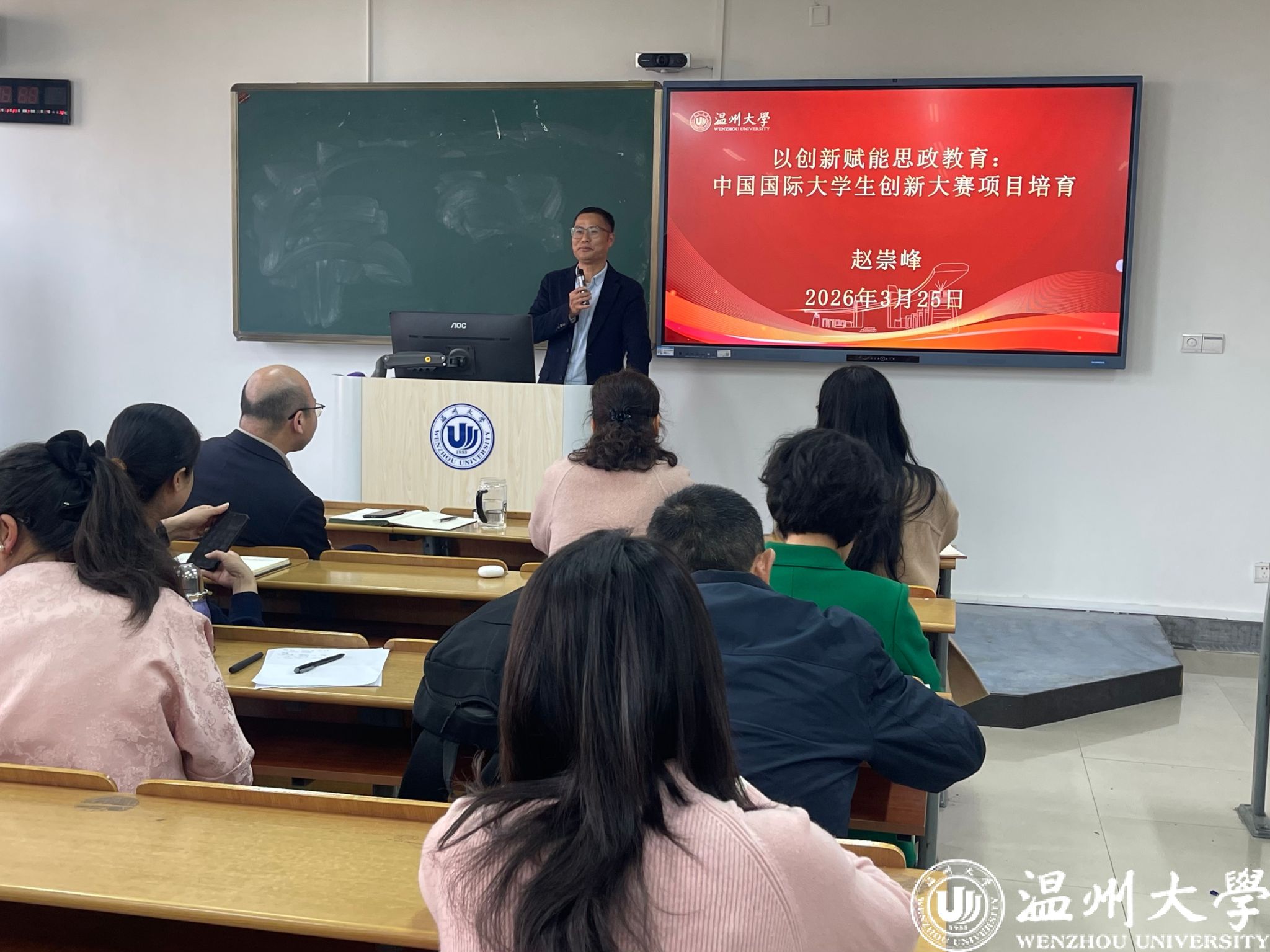 2026国创赛动员部署会环节,学院邀请瑞安研究生学院党总支副书记赵崇峰作《以创新赋能思政教育:中国国际大学生创新大赛项目培育》专题指导。他结合大赛历年参赛要求、评审标准与优质项目案例,详细讲解了大学生创新大赛的核心内容。会议强调,要将思政教育贯穿大学生创新创业全过程,把理论学习、社会实践、创新创造有机结合,引导教师做好项目指导、夯实育人功底,助力学生在创新创业实践中坚定理想信念、提升综合素养,实现思政教育与实践育人同频共振。