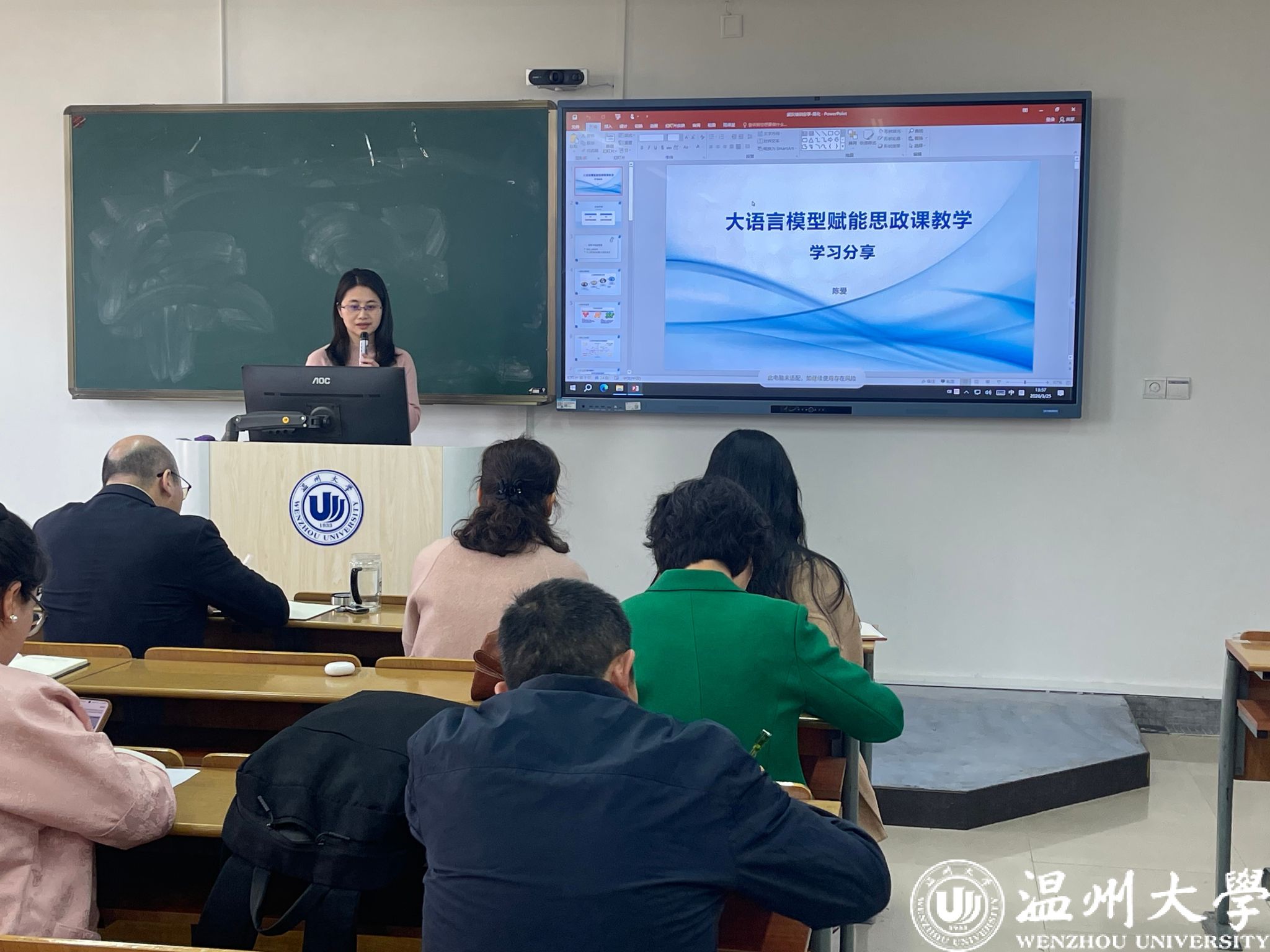 会议将思想政治理论学习与思政课教师素养培训相结合。会上德法教研室主任陈爱围绕“大语言模型赋能思政课教学”开展主题学习分享,结合当下教育数字化转型趋势,展开经验交流。她深入讲解了大语言模型核心内涵,同时立足学院教学实际,提出守好思政课政治底色、科学运用人工智能技术的相关建议,为全院教师推进智慧思政、创新教学模式提供了有效的思路。
