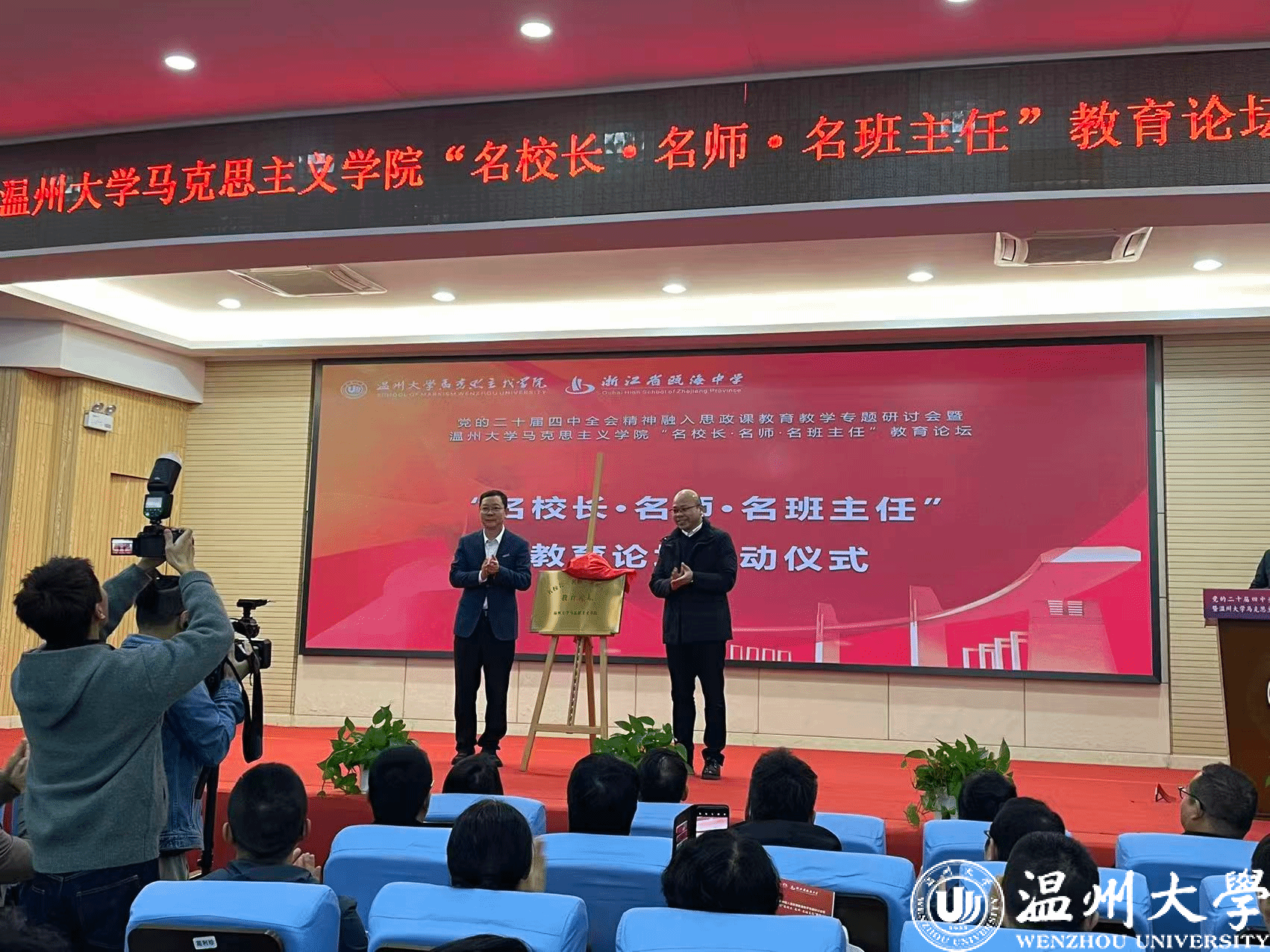 为深入学习贯彻党的二十届四中全会精神,推动党的最新理论融入思政课建设,推进大中小学思政教育一体化建设,搭建高校马院与中小学协同育人的平台,11月29日,党的二十届四中全会精神融入思政课教育教学专题研讨会暨温州大学马克思主义学院“名校长·名师·名班主任”教育论坛在瓯海中学举行。