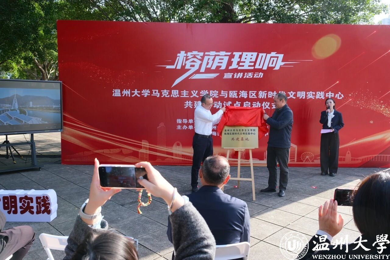 据介绍,温大马院与瓯海新时代文明实践中心共建行动,将设立实践教学基地,组织青年师生开展实地调研、教学研究、社会实践等活动,形成调研报告。结合瓯海“榕树下的文明实践”品牌,共建“榕荫理响”宣讲品牌,博士讲师团还将绘制榕树下文明地图,邀请百姓群众一起讲好瓯海故事。