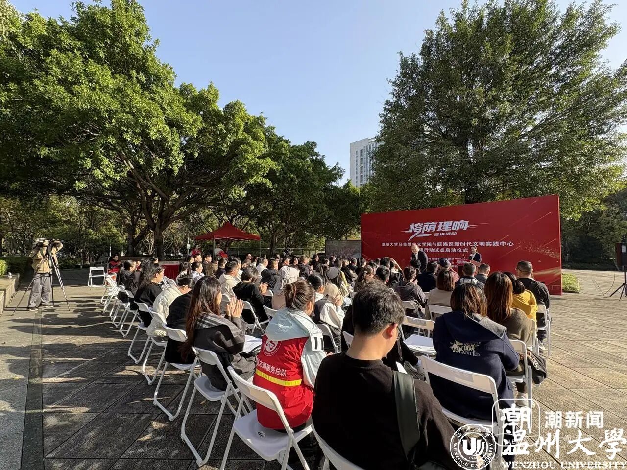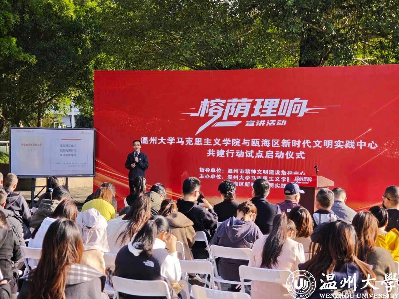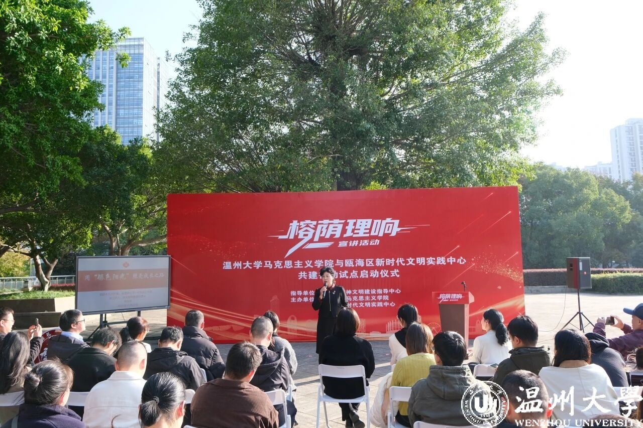 “希望通过文明实践、理论宣讲的形式推动城市精神文明建设。”瓯海区精神文明建设指导中心相关负责人介绍,作为省级首批试点单位之一,瓯海区与温州大学马克思主义学院合作共建“榕荫理响”宣讲品牌,同时组建“温州大学新时代文明实践博士讲师团”、“瓯海区文明实践宣讲团”,结合党的理论与瓯海发展故事,让文明新风走进百姓家。