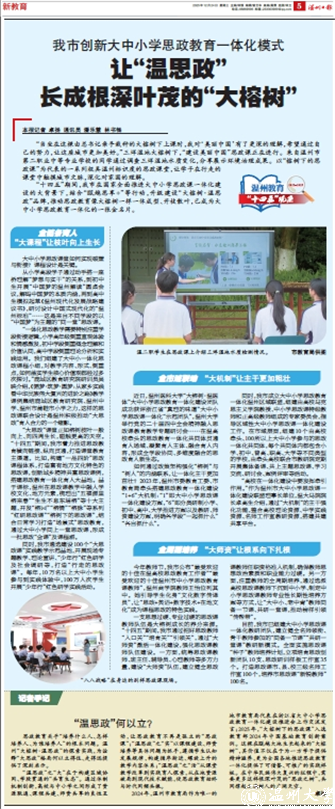 温州日报:我市创新大中小学思政教育一体化模式 让“温思政” 长成根深叶茂的“大榕树”
